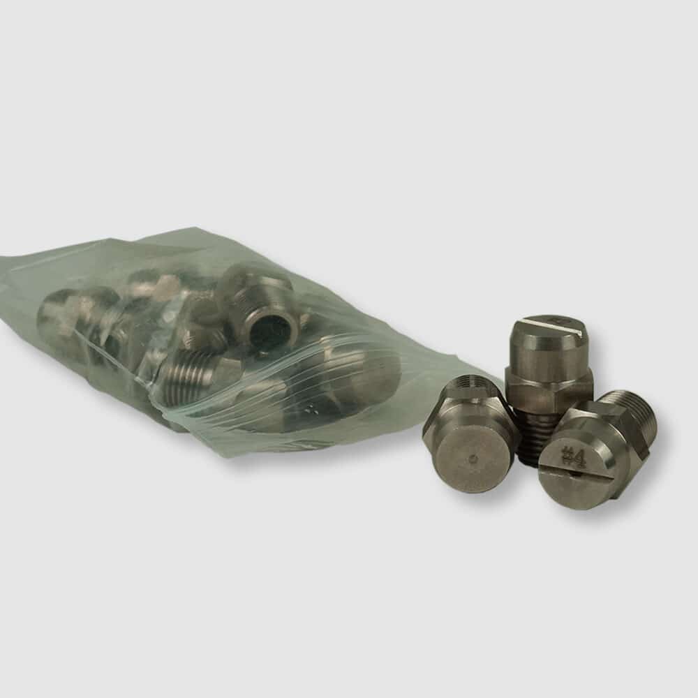 Backyard Snowstorm nozzles are stainless steel and customed for proper water droplet formation. Each Snow Gun includes a misting nozzle pack used to match the flow rate of any pressure washer.
