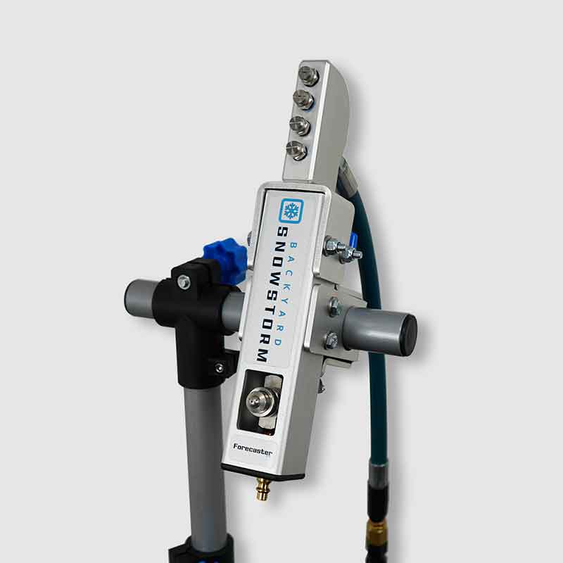 If you use your own or other equipment models, you will need to make sure you have the hoses and quick connections needed to connect this equipment to the Forecaster or Cold Front Snow Gun. These snow guns come built with a standard 3/8" male quick connection water inlet. The air compressor connection is a standard 1/4" industrial male quick connection.